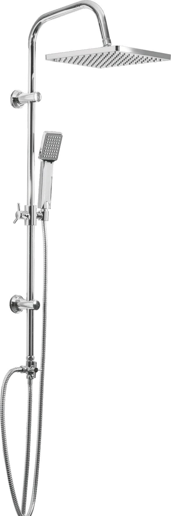 Colonne de douche multifonctionnelle 2 fonctions sélectionnables : douche de tête et douche de pluie à jet unique Double tuyau en acier inoxydable avec embouts en silicone anti-calcaire, Economie d'eau (grâce à l'application d'un joint supplémentaire, inclus dans l'emballage, la consommation d'eau peut être réduite), Entraxe de fixation adaptable, Tuyau flexible en PVC'.