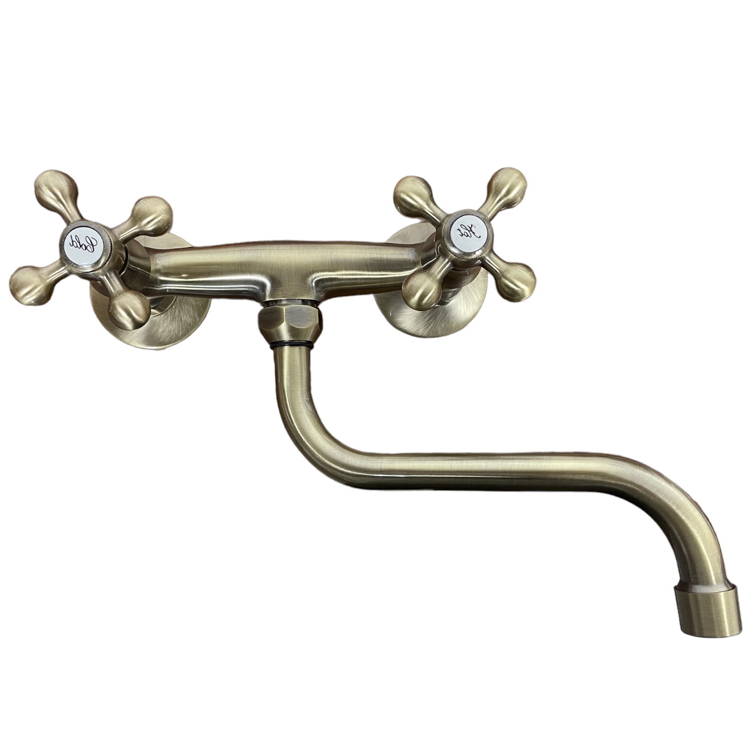 Robinet Perete avec poignées étoile et bec pivotant, avec une belle finition bronzée, laiton ancien