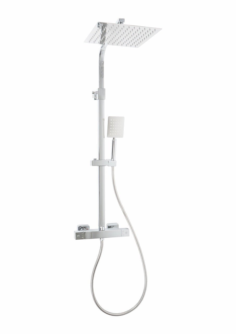 Colonna doccia multifunzione 2 funzioni selezionabilitra : soffione e doccetta ultra slim con getto pioggia Flessibile doppia aggraffatura in acciaio Inox AISI 304 Miscelatore termostatico, dotato di una comoda Altezza soffione regolabile fino a 38 cm dopo l'installazione, con Ugelli anticalcare, Risparmio acqua (grazie all’applicazione di una guarnizione aggiuntiva, inclusa nel pack, è possibile ridurre il consumo di acqua), Interasse di fissaggio adattabile