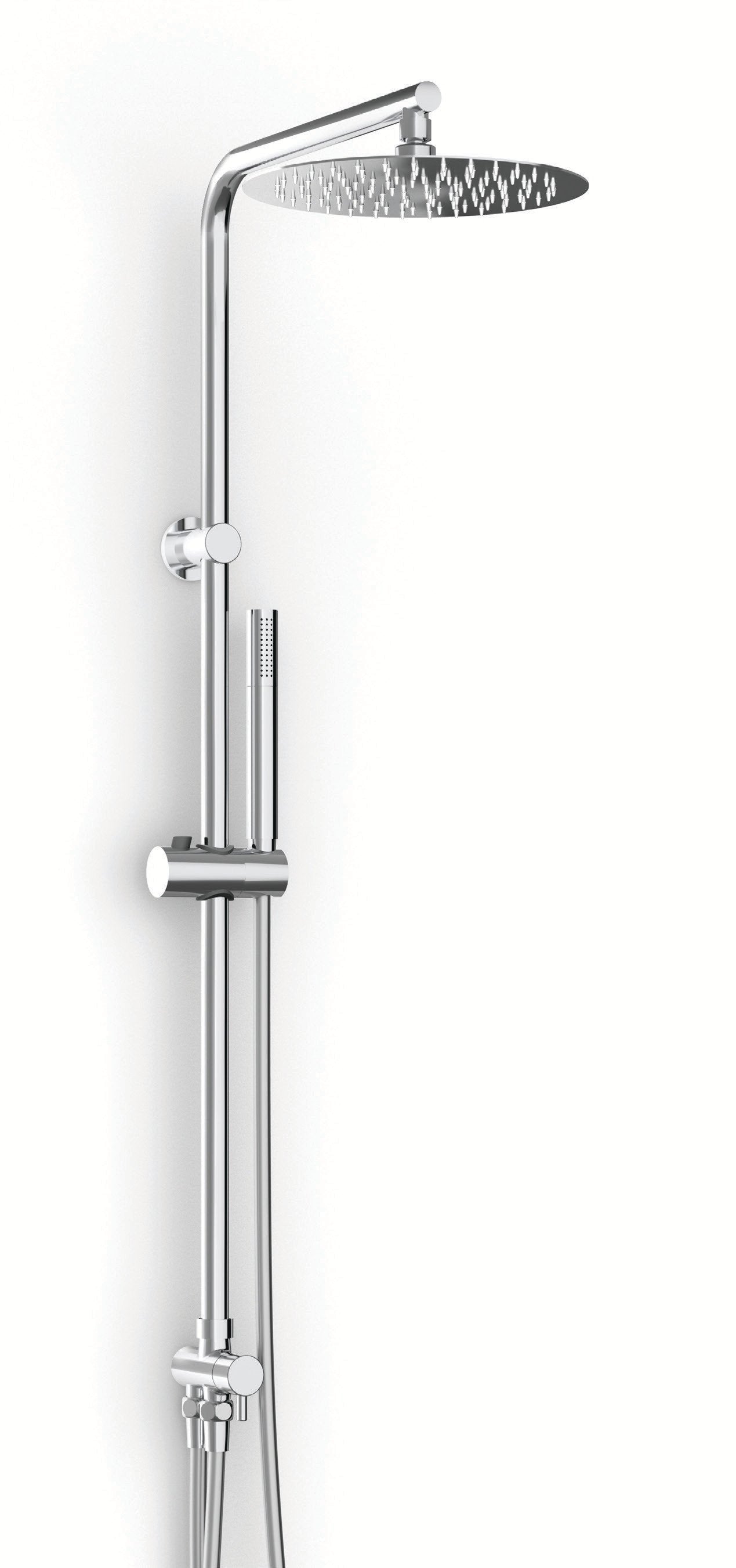 Colonna doccia multifunzione 2 funzioni selezionabili tra: soffione e doccetta ispezionabile con getto pioggia Flessibile in PVC dotato di Ugelli anticalcare, Risparmio acqua (grazie all’applicazione della speciale guarnizione inclusa, è possibile regolare il consumo di acqua in base alla pressione, mantenendo la portata entro i 9 l/min), Dotato di Deviatore con presa acqua esterna, Interasse di fissaggio adattabile, materiale in Inox 18/10