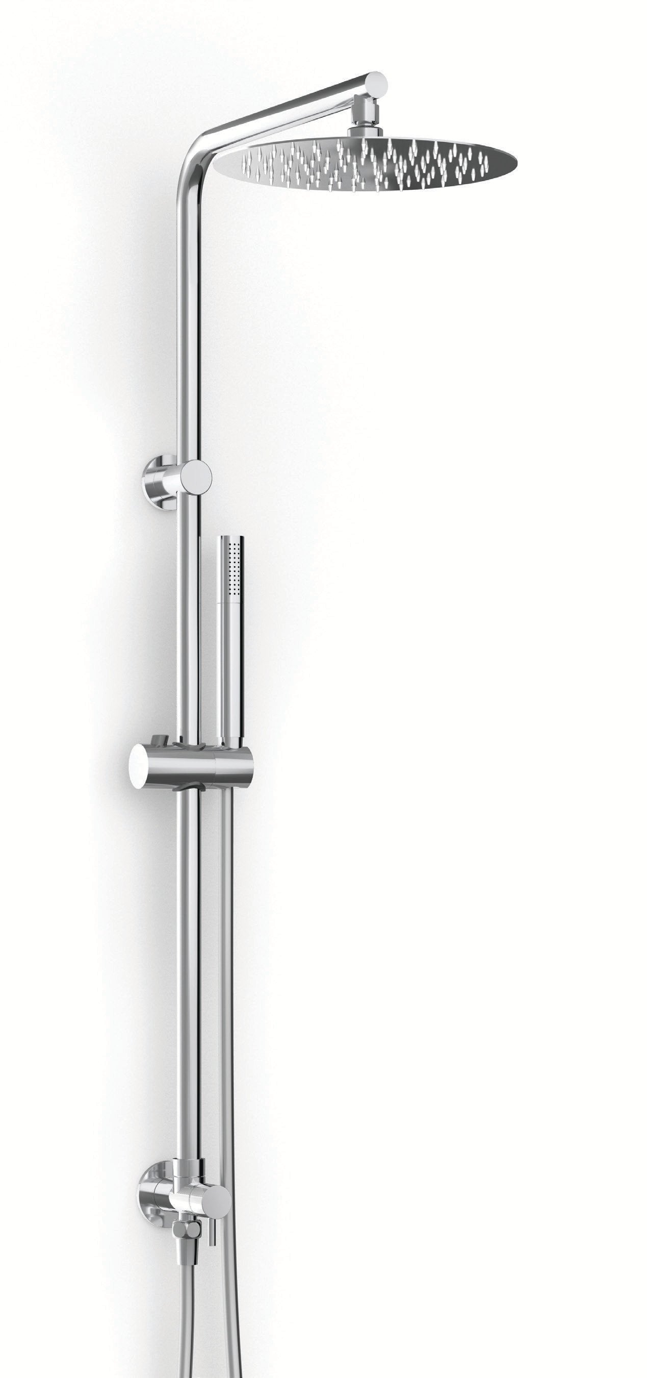Colonna doccia multifunzione 3 funzioni selezionabili tra: soffione e doccetta ispezionabile con getto pioggia Flessibile in PVC Dotato di Ugelli anticalcare, Risparmio acqua (grazie all’applicazione della speciale guarnizione inclusa, è possibile regolare il consumo di acqua in base alla pressione, mantenendo la portata entro i 9 l/min), Dotato di deviatore con presa acqua a parete in ottone, Interasse di fissaggio adattabile, Materiale in Inox 18/11