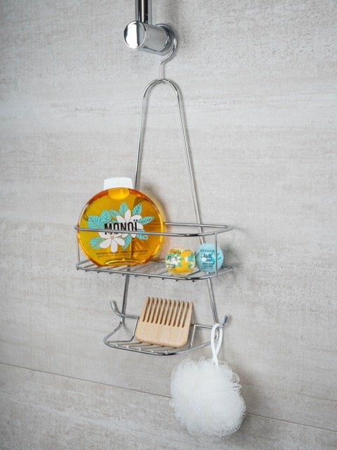 Contenitore per doccia con fissaggio con gancio, nessun foro necessario