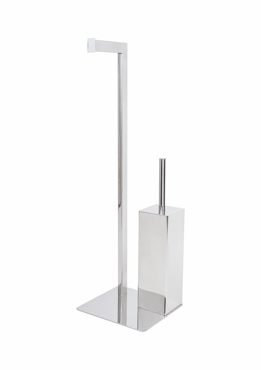 Piantana carta igenica con porta scopino WC in acciaio inox AISI 304.