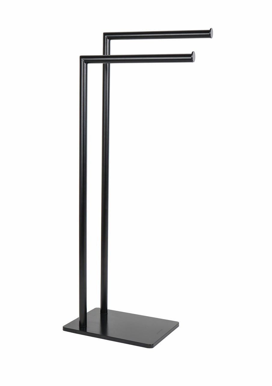 Piantana porta asciugamani in acciaio verniciato e vetro temperato.