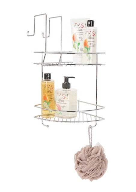 Ripiano per doccia ancolare con doppio appoggio angolare, Fissaggio con gancio