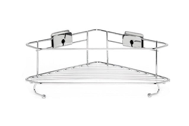 Supporto angolare per doccia con Fissaggio con biadesivo (incluso) o con viti con due ganci porta spugna